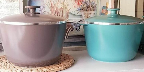 Perilla fabricada en polímero de ingeniería de gran resistencia mecánica y térmica. Cuerpo y tapa recubiertos exteriormente con esmalte vitro porcelanizado, recubrimiento interior en antiadherente color negro.